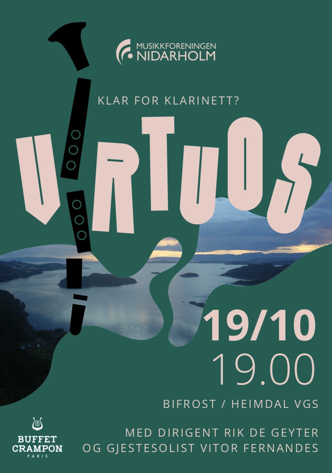 Da vi vant Europamesterskapet for janitsjarkorps første gang (i 2023) var en del av premien en solist fra konkurransens hovedsponser, Buffet Crampon. Søndag 19. oktober får vi besøk av den portugisiske klarinettisten Vitor Fernandes. Han vil spille Webers Concertino for klarinett, og Concerto for Clarinet and Band av Artie Shaw. Allsidig, med andre ord. I tillegg spiller korpset et allsidig repertoar. Hvis du tar en litt nøye titt på plakaten til høyre, vil den kunne gi et hint også.